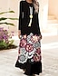 女性用 ミディドレス カジュアルドレス 冬のドレス プリントドレス 活発的 ファッション ストリートファッション バケーション ストリート 日常 レギュラー フラワー カラーブロック 長袖 クルーネック ブラック 秋 冬