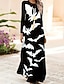 女性用 標準 EU / USサイズ ミディドレス 長袖ボヘミアンドレス サンドレス エレガントなドレス エレガント ボヘミア トロピカル風 バタフライ バケーション 家 ワーク ルーズフィット フラワー 幾何学模様 半袖 Vネック ブラックとホワイト ルビーレッド ブルー エメラルドグリーン 夏 春 秋