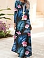 女性用 ロングドレス マキシドレス プリントドレス ファッション アウトドア バケーション 祝日 レギュラー フラワー 長袖 Vネック ブルー 秋