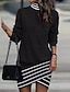 女性用フーディドレスミディドレスシフトドレスカジュアルバケーション外出レギュラーフィットチェック長袖タートルネック黒灰春秋冬