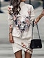 女性用 ミニドレス カジュアルドレス サマードレス ファッション 近代の バケーション 日常 週末 レギュラー フラワー グラフィック カラーグラデーション 七分袖 Vネック ホワイト ピンク ワイン ネイビーブルー 夏