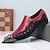 クロコダイル柄とスタッズディテールが施されたメンズレッドフェイクレザースリッポンローファー。クリスマスパーティーや特別な機会にぴったりのスタイリッシュなフットウェアです。