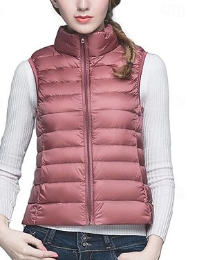 女性用 ベスト 保温 快適 ジッパー ポケット カジュアル 平織り バケーション デイリーウェア お出かけ 週末 レギュラー スタンド レギュラー ノースリーブ アウターウェア 海軍 ブラック ピンク 秋 冬