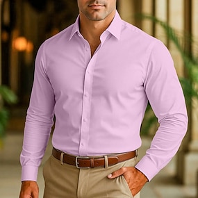 男性用 シャツ ドレスシャツ ボタンアップシャツ 平織り 結婚式 パーティー ホワイト ピンク ブルー ライトパープル 長袖 ラペル 春 秋 衣類 ポケット
