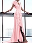 ビーチウェディング Aラインクリスマスドレス イブニングガウン セレブリティスタイルドレス フォーマルウェディングゲスト フロア丈 ノースリーブ Vネック シフォン スリット付き プレーンカラーのドレス 仮面舞踏会ドレス