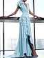 マーメイド  トランペット キンセニエラドレス エレガントなドレス 結婚式 結婚式のゲスト スイープ  ブラシトレイン 短袖 Vネック スパンコールバックレス スパンコール付き