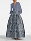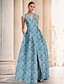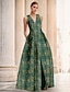 ジャカードブロケードフローラルAラインイブニングガウンエレガントドレスフォーマルウェディングフロアレングスノースリーブVネックナイロンスリットポケット付きウェディングゲストドレス