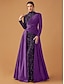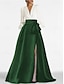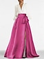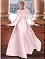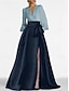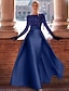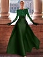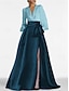Aライン イブニングガウン エレガント ドレス フォーマル フロア丈 ロングスリーブ ジュエルネック サテン フリル付き スリット マスカレードドレス