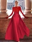 赤 Aライン ヴィンテージ 刺繍イブニングガウン エレガントドレス タキシードドレス フォーマル フロアレングス 3/4スリーブ シャツカラー サテン アプリーク付き
