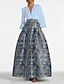 フローラル ジャカード Aライン イブニングガウン エレガント ドレス フォーマル 結婚式 フロアレングス ショートスリーブ シャツカラー ナイロン フラワープリント スリットポケット ウェディングゲストドレス