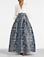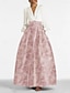 ジャカードブロケード フローラル Aラインイブニングガウン ドレス フォーマルウェディングゲスト フロアレングス 長袖 Vネック ベルト ナイロン スリットポケット