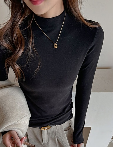女性用 ドレッシーなトップス タイトトップス 純色 平織り エレガント レディース スタイリッシュ 長袖 ハイネック レギュラートップス ワーク 日常 お出かけ チュニック ドレープ ブラック ホワイト ライトグレー アプリコット グレー 秋 冬