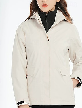 女性用 カジュアルジャケット 防水レインジャケット レインコート 3-in-1 防水ダウンジャケット 防水 快適 ジッパー ポケット カジュアル カラーブロック アウトドア バケーション ストリート デイリーウェア ジッパ- レギュラー フード付き レギュラー 長袖 アウターウェア ライトピンク ブラック ホワイト 春 秋