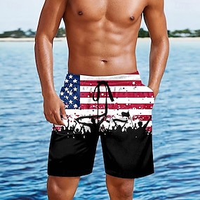 アメリカ独立記念日 男性用 米国旗 愛国 7月4日 スイムトランク スイムショーツ ボードショーツ ミディアムウエスト 3Dプリント ハワイアン 祝日 ドローストリング メッシュ裏地付き 弾性ウエスト デザイナー 衣類