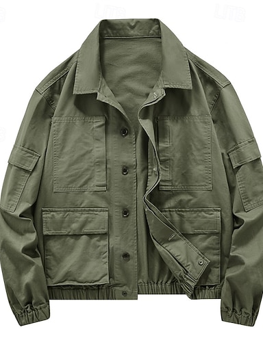 男性用 軽量ジャケット ユーティリティジャケット カーゴジャケット アウトドア 日常 耐摩耗性 複数のポケット 春 & 秋 星形 ファッション クラシック ラペル レギュラー カーキ色 アーミーグリーン ダークブルー ジャケット