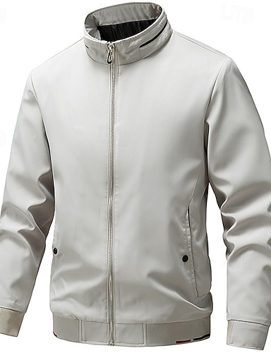 男性用 軽量ジャケット サマージャケット カジュアルジャケット バケーション 日常 保温 ポケット 秋冬 平織り ファッション クラシック スタンド レギュラー ブラック ホワイト ライトグレー ダックグレー ジャケット