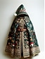 女性用 カジュアルジャケット クローク / 岬 快適 高通気性 プリント ヴィンテージ カジュアル クリスマス バケーション ストリート カジュアル デイリーウェア オープンフロント ロング フード付き ルーズフィット 長袖 アウターウェア グリーン 春 秋