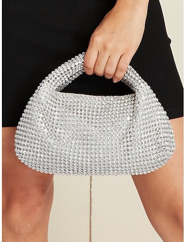 女性用 クラッチバッグ イブニングバッグ ストラップ付きポーチ グレーテルマテリアル パーティー バレンタイン ウェディングパーティー ラインストーン ライトウェイト 純色 シルバー