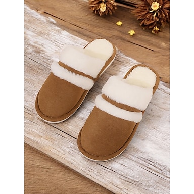 スエード仕上げの、女性用の心地よいフェイクファー裏地付きスリッパ - 冬の快適さのための暖かい室内履き