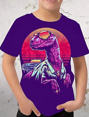 子供 男の子 Tシャツ ティー 動物 恐竜 半袖 クルーネック 子供トップ カジュアル 3Dプリント クール 日常 夏 パープル 3〜12年