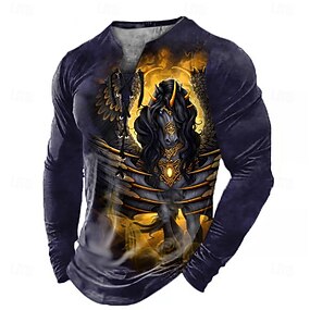 Halloween 男性用 ドラゴン 3D ヘンリーシャツ Tシャツティー 長袖 Tシャツ 3Dプリント Vネック レースアップネック ヘンリー シャツ ファッション カジュアル ヴィンテージレトロ ストリート カジュアル 日常 ブラック ブルー パープル 夏 春 春夏 衣類 S M L XL XXL XXXL