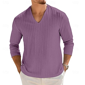 男性用 メンズVネックリブニットTシャツ リブニットTシャツ ティートップ 長袖 Vネック 夏 春 秋 純色 平織り ジャカード 近代の カジュアル 快適 ボタン ベーシック 平織り 家 ストリート カジュアル ホワイト ネイビーブルー ロイヤルブルー メンズトップTシャツ