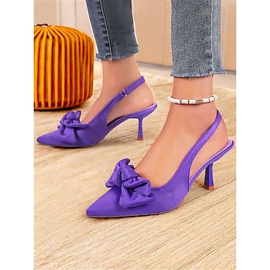 レディース パープルサテンリボン ポインテッドトゥ スリングバックヒール - パーティー、結婚式、フォーマルなシーンにぴったりの 1950 年代のエレガントなヴィンテージスタイルのシューズ