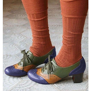 女性用 ヒール パンプス 靴 ウイングチップシューズ ヴィンテージシューズ パーティー アウトドア 日常 カラーブロック 夏 コーンヒール ラウンドトウ エレガント 旅行度假风 かわいいスタイル レザー バックルは含まれません ブラック イエロー パープル