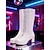 レディース パープル パテントフェイクレザー ニーハイブーツ - スタイリッシュなジッパーディテール、チャンキーヒール、パーティー、夜のお出かけ、大胆なファッションルックに最適な 1980 年代のレトロなディスコスタイル