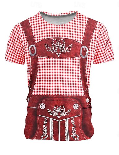 オクトーバーフェスト 男性用 チェック ドイツ ディアンドル Tシャツ 半袖 Tシャツ 3Dプリント クルーネック シャツ 旅行度假风 誇張された デザイナー カーニバル パーティー ライトブルー 青1# ピンク 夏 春 衣類 S M L XL XXL XXXL