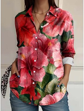 ウィメンズ シャツ ボタン ダウン チュニック シャツ カラー 長袖 フローラル カジュアル レギュラー トップス ワーク デイリー s プリント ピンク レッド ブルー オレンジ レインボー 春 秋