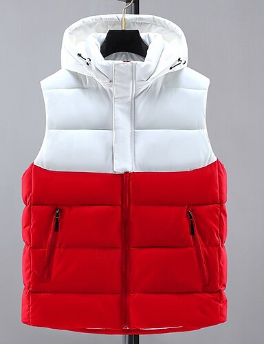 男性用 パファーベスト パッド入り ジレ キルティングベスト 日常 デート バケーション ファッション カジュアル 秋冬 ポケット ポリエステル 保温 快適 純色 ジッパ- フード付き レギュラー ブラック ダークレッド ルビーレッド ベスト