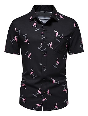 男性用 フラミンゴ トロピカル風 シャツ アロハシャツ 半袖 シャツ 折襟 デザイナー カラーブロック クラシック 祝日 ブラック ホワイト 3Dプリント S M L