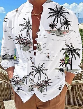 男性用 ココナッツの木 熱帯植物 シャツ アロハシャツ 長袖 シャツ スタンド ファッション デザイナー カジュアル アウトドア バケーション ストリート ホワイト ピンク ブルー S M L