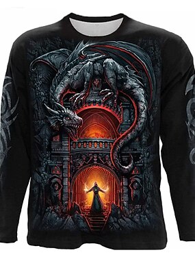 男性用 ドラゴン グラフィック Tシャツ 長袖 Tシャツ 3Dプリント クルーネック シャツ ヴィンテージ スポーツ デザイナー アウトドア ストリート カジュアル ブラック 春 & 秋 衣類 S M L XL XXL 3XL
