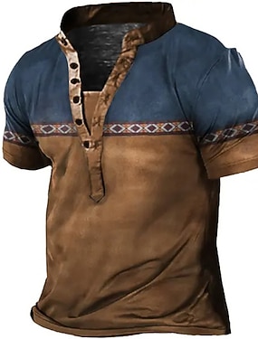 男性用 カウボーイ Tシャツ ヘンリーシャツ 半袖 3Dプリント デザイナー レトリ/ヴィンテージ 洋式 ストリート カジュアル 日常 夏 春 ライトブラウン ブルー ブラウン ヘンリー ヘンリーTシャツ