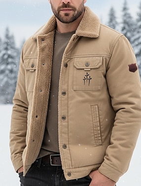 男性用 グラフィック 十字架 ボンバージャケット シェルパジャケット 保温 ヴィンテージ カジュアル アウトドア 家 複数のポケット コットンジャケット 冬用コート 秋 冬 フリースのターンダウンカラー 長袖 カーキ色