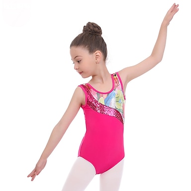 子供用ダンスウェア バレエ レオタード / 着ぐるみ 捺染 スプライシング スパンコール 女の子 訓練 性能 ノースリーブ ハイウエスト ポリエステル