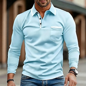 男性用 ポロシャツ マッスルシャツ フォーマル ワーク リブ付きポロカラー 長袖 ファッション 快適 カラーブロック ボタン 夏 春 秋 スリムフィット ライトブルー ホワイト グリーン ポロシャツ