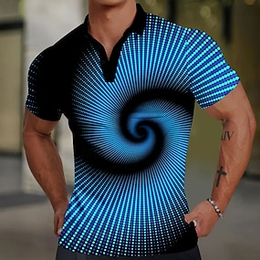男性用 幾何学模様 ジップポロシャツ ゴルフシャツ 半袖 ポロシャツ 襟付きシャツ ビジネスカジュアル バケーションウェア フォーマルウェア フェスティバルウェア 3Dプリント クォータージップポロ 夏 春 ブルー