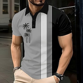 男性用 ヤシの木 ポロ 半袖 ポロシャツ ラペル カジュアル リゾート アスレイジャー ハワイアン 3Dプリント ボタン 夏 ブルー パープル ブラウン