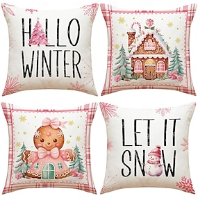 クリスマスの枕カバー、ジンジャーブレッドマン &アルファベットプリントの装飾クッション、ソファ用のホリデー用クッション &家の装飾