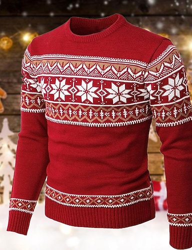 醜いクリスマスセーター メンズセーター スノーフレーク編みプリント プルオーバージャンパー 大晦日セーター アウトドア デイリー 長袖 クルーネック レッド ネイビー ブルー グリーン 秋 冬 S M L