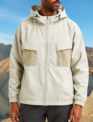 男性用 ウィンドブレーカー ソフトシェルジャケット ハイキング ジャケット アウトドア 防水 防風 ハイキングの服装 ハイキングウェア 春 秋 トップス キャンプ / ハイキング / ケイビング ランニング パッチワーク ブラック アーミーグリーン ダークブルー