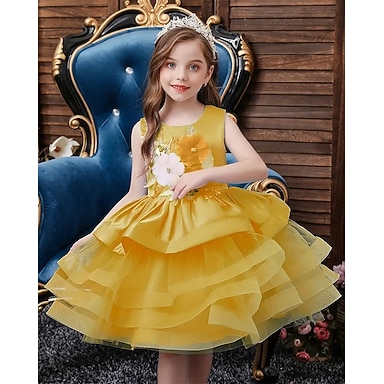 女子 3D ソリッド ドレス ノースリーブ 夏 春 パーティー 日常 かわいいスタイル プリンセス 幼児 2-6歳 チュールワンピース 膝丈 スリム