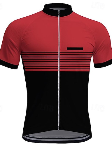 男性用 サイクリングジャージー グラフィック 幾何学模様 縞柄 半袖 バイク Tシャツ ジャージー トップス 3つのリアポケット付き UV耐性 速乾性 フロントファスナー 反射性ストリップ スポーツ ブラック 衣類