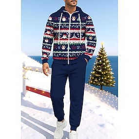 クリスマス 男性用 パーカー トラックスーツ ジップパーカー ドローストリング ポケット パンツ パーカー トレーナー 秋 ダークネービー ジムトレーニング カジュアル バスケットボール バギー 長袖 スポーツ アクティブウェア 伸縮性あり レギュラー
