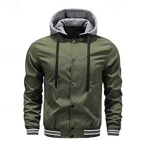 男性用 軽量ジャケット カジュアルジャケット パーカージャケット バケーション 日常 高通気性 ポケット 春 秋 縞 ファッション クラシック フード付き レギュラー ブラック アーミーグリーン ジャケット