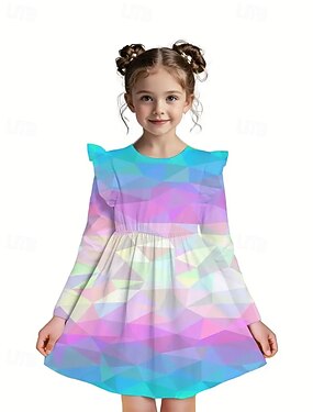 女子 3D 幾何学模様 ドレス ラッフルドレス 長袖 夏 春 バケーション 日常 祝日 プリンセス 美しい 甘い 子供 4〜12年 カジュアルドレス A ラインドレス 膝丈 レギュラー