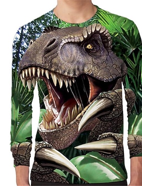 男の子 3D グラフィック 動物 恐竜 Tシャツ Tシャツ 長袖 3Dプリント 夏 春 秋 スポーツ ファッション ストリートファッション 子供 3〜12年 アウトドア カジュアル 日常 レギュラー